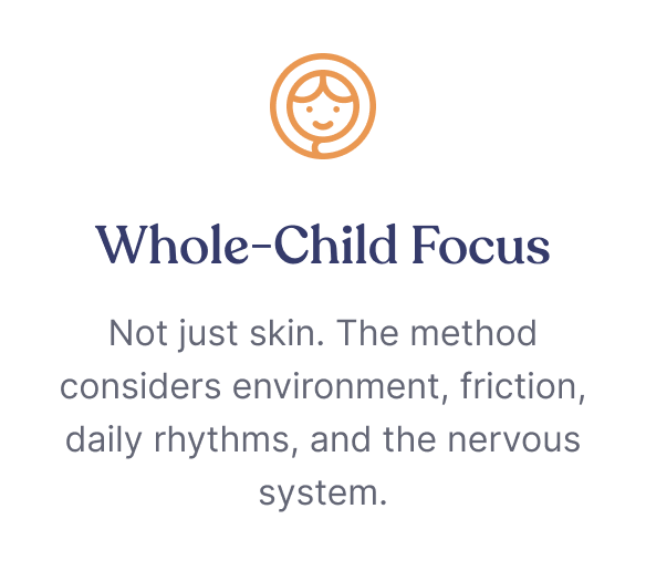 Instead of assuming every child’s skin behaves the same way, the method helps you recognize what your child’s skin needs — and adjust care as it changes.